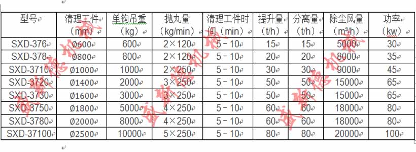 四、吊鉤式拋丸機(jī)技術(shù)參數(shù):