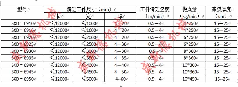 本機為輥道式連續(xù)送料的高功能拋丸清理設備,在清理過程中由電氣控制的可調速輸送輥道將鋼結構件或鋼材送進清理機室體內拋射區(qū)時,其周身各面受到來自不同坐標方位的強力密集彈丸打擊與磨擦,使之其上的氧化皮、銹層及其污物迅速脫落,鋼材表面就獲得一定粗糙度的光潔表面,在清理室外兩邊進出口輥道裝卸工件。落入鋼材上面的彈丸與銹塵經吹掃裝置吹掃,撒落下來的丸塵混合物由回收螺旋輸送到室體漏斗、縱橫向螺旋輸送機匯集于提升機下部,再提升到機器上部的分離器里,分離后的純凈彈丸落入分離器料斗中內,供拋丸循環(huán)使用。拋丸清理中產生塵埃,由抽風管送向除塵系統(tǒng),凈化處理后的凈氣排放到大氣中,顆粒狀塵埃被收集。