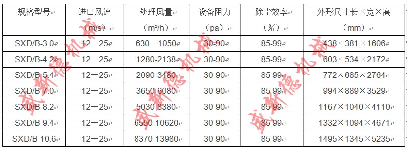 三、旋風(fēng)除塵器技術(shù)參數(shù):